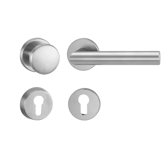 Griffwerk LUCIA PROFESSIONAL Schraubtechnik -Edelstahl matt Schutzrosettengarnitur -Knopf R2 -PZ -Kombi-Innenrosettensatz rund
