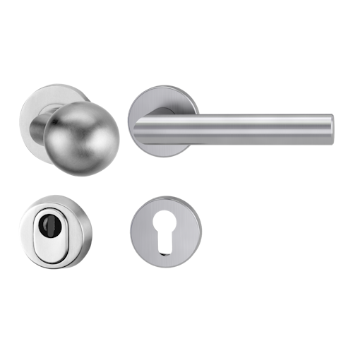 Griffwerk LUCIA PROFESSIONAL Schraubtechnik -Edelstahl matt Schutzrosettengarnitur -Knopf R3 -ZA -Kombi-Innenrosettensatz rund