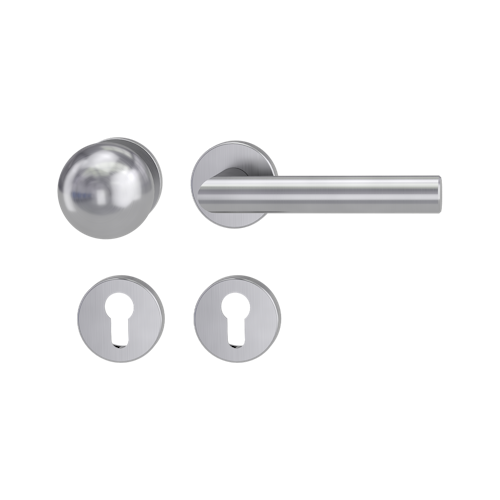 Griffwerk LUCIA PROFESSIONAL Schraubtechnik -Edelstahl matt Schutzrosettengarnitur -Knopf R4 -PZ -Kombi-Innenrosettensatz rund