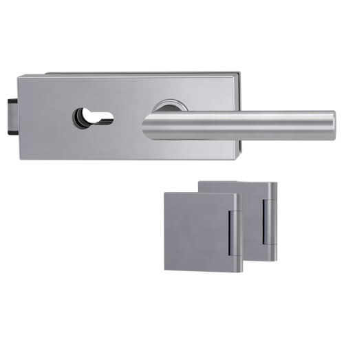 Griffwerk PURISTO 1.0 -Edelstahl matt Ganzglastürbeschlagset -3-teiliger Bandsatz -mit Griff LUCIA PROF EM -PZ