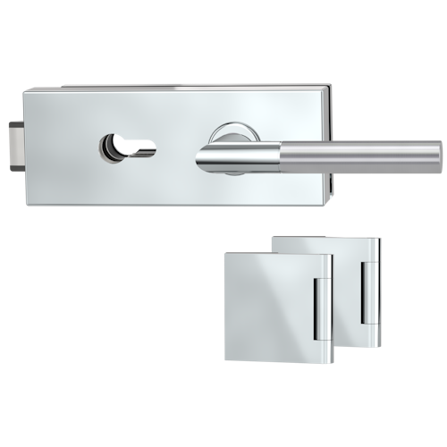 Griffwerk PURISTO 1.0 -Edelstahl poliert Ganzglastürbeschlagset -3-teiliger Bandsatz -mit Griff ARICA Klippt. -EP/EM -PZ
