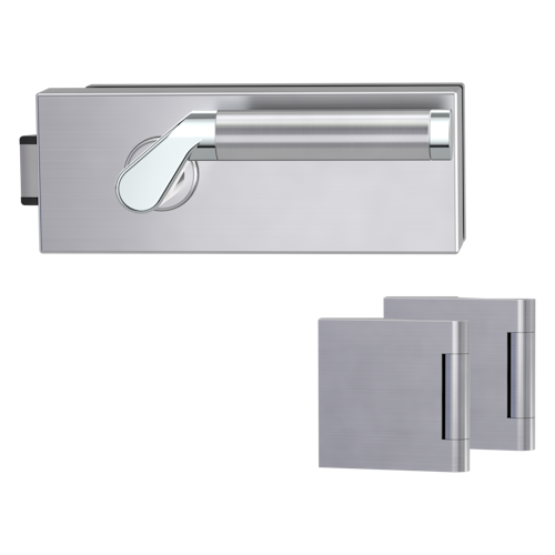 Griffwerk PURISTO 1.0 -Edelstahl poliert Ganzglastürbeschlagset -3-teiliger Bandsatz -mit Griff CORINNA -CHR/EM -UV