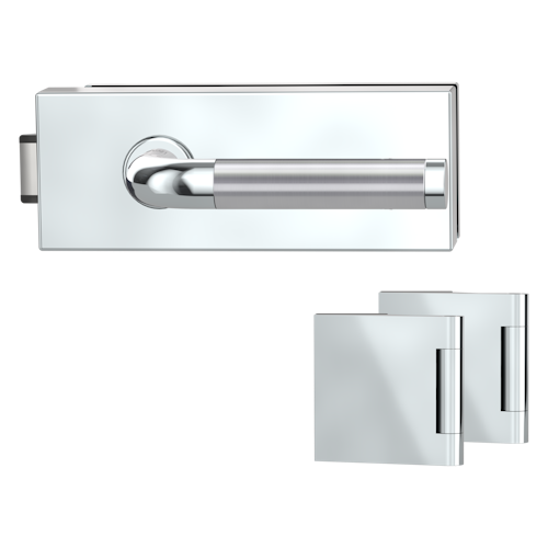 Griffwerk PURISTO 1.0 -Edelstahl poliert Ganzglastürbeschlagset -3-teiliger Bandsatz -mit Griff SIMONA -CHR/EM -UV