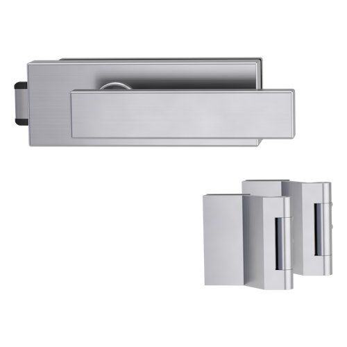 Griffwerk PURISTO S -Edelstahl matt Ganzglastürbeschlagset -3-teiliger Bandsatz -mit Griff CARLA -EM -UV