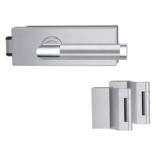 Griffwerk PURISTO S -Edelstahl matt Ganzglastürbeschlagset -3-teiliger Bandsatz -mit Griff CHRISTINA -EM -UV