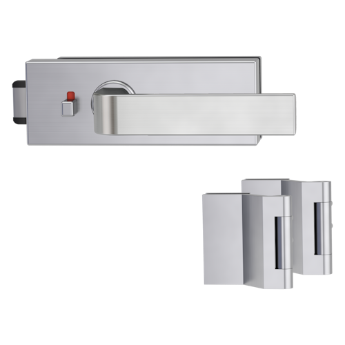 Griffwerk PURISTO S -Edelstahl matt Ganzglastürbeschlagset -3-teiliger Bandsatz -mit Griff DESM GRAPH -SG -smart2lock