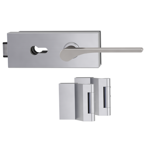 Griffwerk PURISTO S -Edelstahl matt Ganzglastürbeschlagset -3-teiliger Bandsatz -mit Griff DESM LEAF LIGHT -SG -PZ