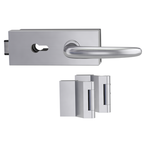 Griffwerk PURISTO S -Edelstahl matt Ganzglastürbeschlagset -3-teiliger Bandsatz -mit Griff DESM ULMER GRIFF -EM -PZ