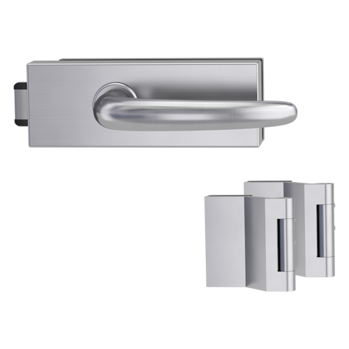 Griffwerk PURISTO S -Edelstahl matt Ganzglastürbeschlagset -3-teiliger Bandsatz -mit Griff DESM ULMER GRIFF -EM -UV