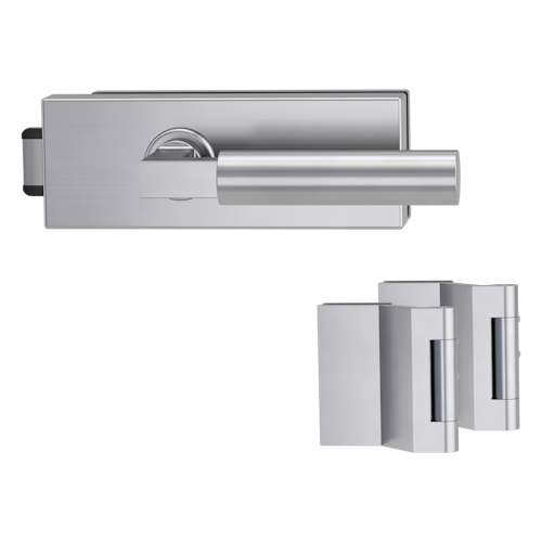 Griffwerk PURISTO S -Edelstahl matt Ganzglastürbeschlagset -3-teiliger Bandsatz -mit Griff METRICO PROF -EM -UV