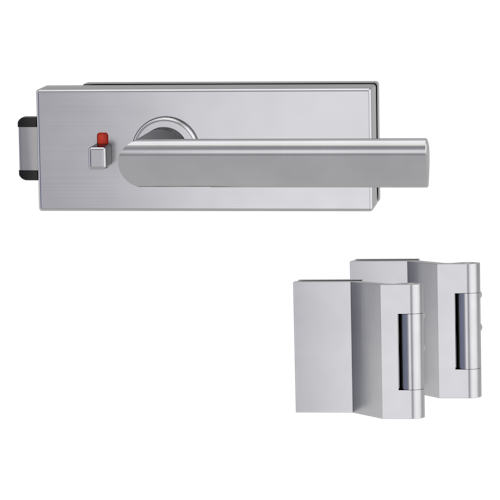 Griffwerk PURISTO S -Edelstahl matt Ganzglastürbeschlagset -3-teiliger Bandsatz -mit Griff TRI 134 -EM -smart2lock