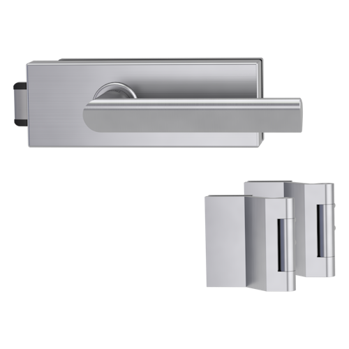 Griffwerk PURISTO S -Edelstahl matt Ganzglastürbeschlagset -3-teiliger Bandsatz -mit Griff TRI 134 -EM -UV