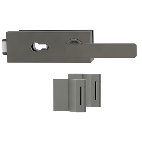 Griffwerk PURISTO S -Kaschmirgrau Ganzglastürbeschlagset -3-teiliger Bandsatz -mit Griff DESM MINIMAL MODERN -EM -PZ