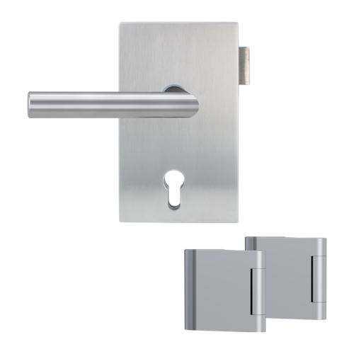 Griffwerk QUATTRO 1.0 -Edelstahl matt Ganzglastürbeschlagset -Office/Office -mit Griff LUCIA PROF EM -PZ li