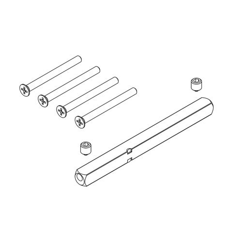 Griffwerk Set für Griffe Klipp -FS Panik Vollstift 9x9mm mittig geteilt mit Schrauben Stift 120, Schraubenl.: 45mm, TS 40-45mm