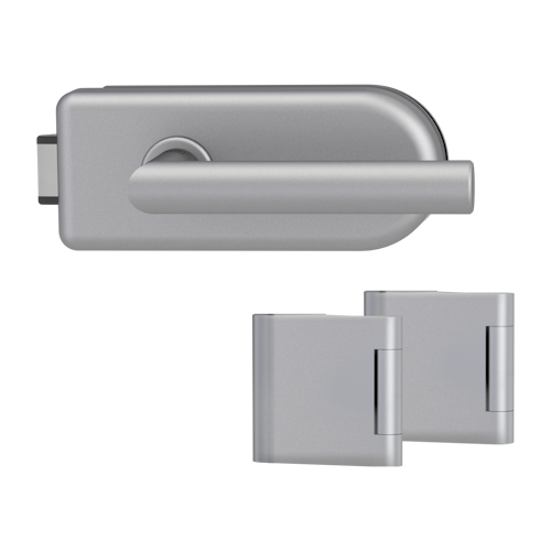 Griffwerk SMILE 1.0 -Alu EV1 Ganzglastürbeschlagset -3-teiliger Bandsatz -mit Griff L-Form -UV