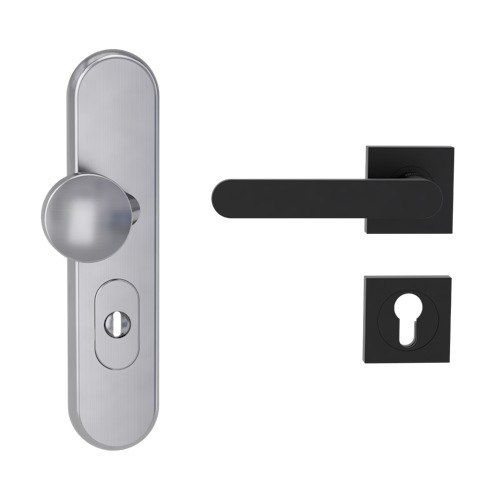 Griffwerk TITANO Kombi SB_882 ES1 (S2) -Edelstahl matt Kombi-Schutzbeschlag -Knopf/Drücker -mit Griff AVUS -GSC -eckig -L -ZA, 72mm -TS 38-50