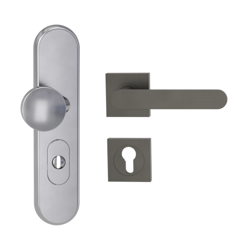 Griffwerk TITANO Kombi SB_882 ES1 (S2) -Edelstahl matt Kombi-Schutzbeschlag -Knopf/Drücker -mit Griff AVUS -KGR -eckig -R -ZA, 72mm -TS 38-50