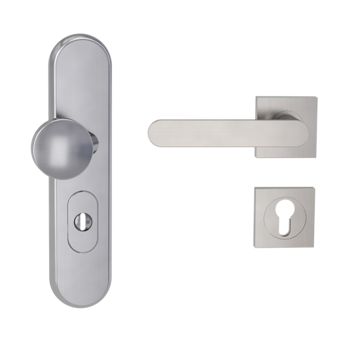 Griffwerk TITANO Kombi SB_882 ES1 (S2) -Edelstahl matt Kombi-Schutzbeschlag -Knopf/Drücker -mit Griff AVUS -SG -eckig -L -ZA, 72mm -TS 38-50
