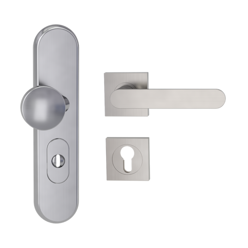 Griffwerk TITANO Kombi SB_882 ES1 (S2) -Edelstahl matt Kombi-Schutzbeschlag -Knopf/Drücker -mit Griff AVUS -SG -eckig -R -ZA, 72mm -TS 38-50