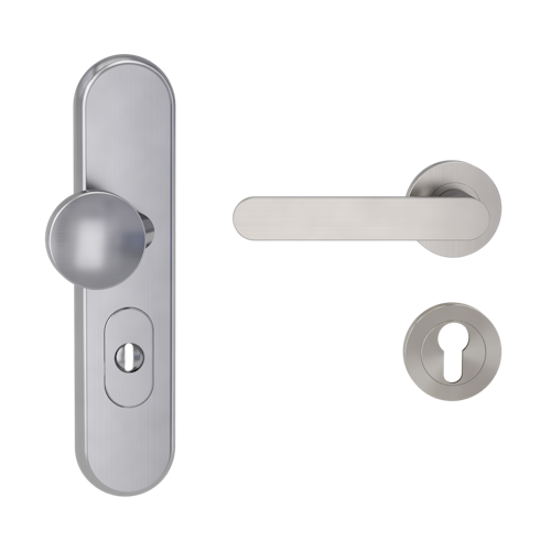 Griffwerk TITANO Kombi SB_882 ES1 (S2) -Edelstahl matt Kombi-Schutzbeschlag -Knopf/Drücker -mit Griff AVUS -SG -rund -L -ZA, 72mm -TS 38-50