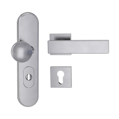 Griffwerk TITANO Kombi SB_882 ES1 (S2) -Edelstahl matt Kombi-Schutzbeschlag -Knopf/Drücker -mit Griff CARLA SQUARE Klippt. -EM -ZA, 72mm -TS 38-50