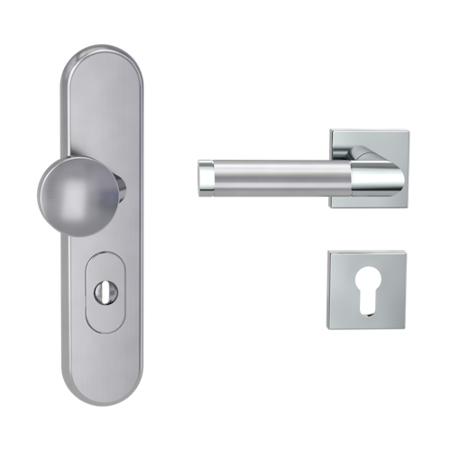 Griffwerk TITANO Kombi SB_882 ES1 (S2) -Edelstahl matt Kombi-Schutzbeschlag -Knopf/Drücker -mit Griff CHRISTINA QUATTRO Klippt.-EP/EM-L-ZA,72mm-TS 38-50