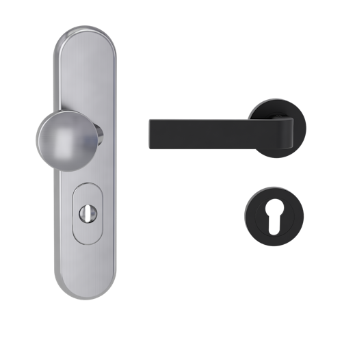 Griffwerk TITANO Kombi SB_882 ES1 (S2) -Edelstahl matt Kombi-Schutzbeschlag -Knopf/Drücker -mit Griff DESM GRAPH -GSC -rund -L -ZA, 72mm -TS 38-50