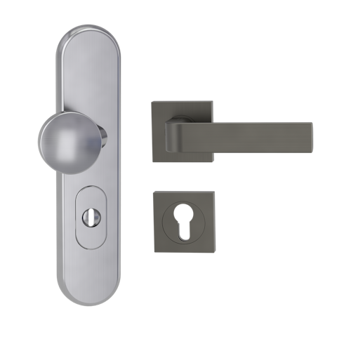 Griffwerk TITANO Kombi SB_882 ES1 (S2) -Edelstahl matt Kombi-Schutzbeschlag -Knopf/Drücker -mit Griff DESM GRAPH -KGR -eckig -R -ZA, 72mm -TS 38-50