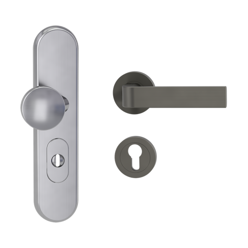 Griffwerk TITANO Kombi SB_882 ES1 (S2) -Edelstahl matt Kombi-Schutzbeschlag -Knopf/Drücker -mit Griff DESM GRAPH -KGR -rund -R -ZA, 72mm -TS 38-50