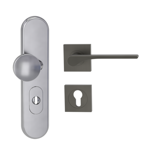 Griffwerk TITANO Kombi SB_882 ES1 (S2) -Edelstahl matt Kombi-Schutzbeschlag -Knopf/Drücker -mit Griff DESM LEAF LIGHT -KGR -eckig -R -ZA, 72mm -TS 38-50