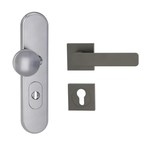 Griffwerk TITANO Kombi SB_882 ES1 (S2) -Edelstahl matt Kombi-Schutzbeschlag -Knopf/Drücker -mit Griff DESM MINIMAL MODERN -KGR-eckig-R-ZA, 72mm-TS 38-50