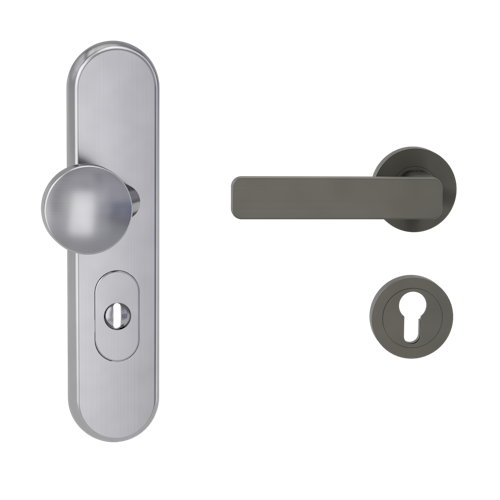 Griffwerk TITANO Kombi SB_882 ES1 (S2) -Edelstahl matt Kombi-Schutzbeschlag -Knopf/Drücker -mit Griff DESM MINIMAL MODERN -KGR-rund -L-ZA,72mm-TS 38-50