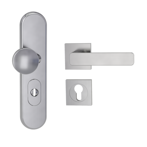 Griffwerk TITANO Kombi SB_882 ES1 (S2) -Edelstahl matt Kombi-Schutzbeschlag -Knopf/Drücker -mit Griff DESM MINIMAL MODERN -SG-eckig-R- ZA, 72mm-TS 38-50
