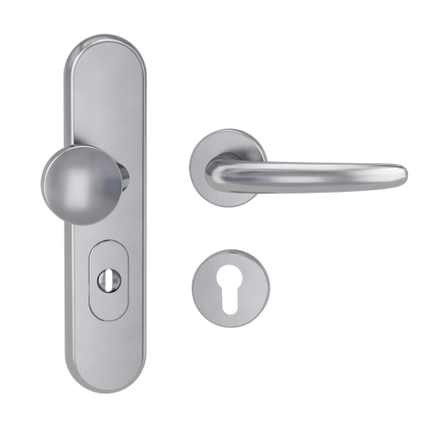 Griffwerk TITANO Kombi SB_882 ES1 (S2) -Edelstahl matt Kombi-Schutzbeschlag -Knopf/Drücker -mit Griff DESM ULMER GRIFF Klippt.-EM-rund-R-ZA,72mm- 38-50