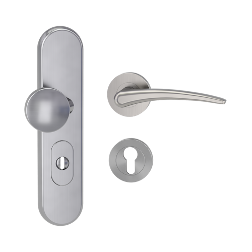 Griffwerk TITANO Kombi SB_882 ES1 (S2) -Edelstahl matt Kombi-Schutzbeschlag -Knopf/Drücker -mit Griff MARISA Schraubt. -SG -R -ZA, 72mm -TS 38-50