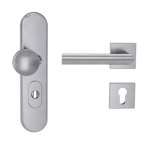 Griffwerk TITANO Kombi SB_882 ES1 (S2) -Edelstahl matt Kombi-Schutzbeschlag -Knopf/Drücker -mit Griff OVIDA QUATTRO Klippt. -EM -L -ZA, 72mm -TS 38-50
