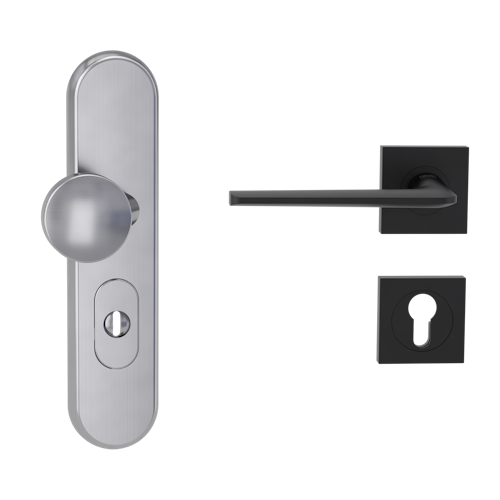 Griffwerk TITANO Kombi SB_882 ES1 (S2) -Edelstahl matt Kombi-Schutzbeschlag -Knopf/Drücker -mit Griff REMOTE -GSC-eckig -L - ZA, 72mm -TS 38-50