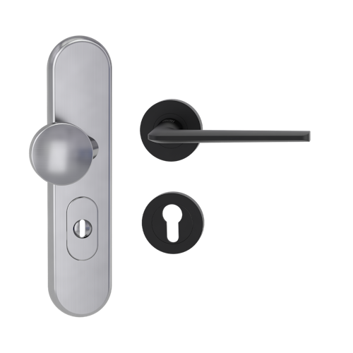 Griffwerk TITANO Kombi SB_882 ES1 (S2) -Edelstahl matt Kombi-Schutzbeschlag -Knopf/Drücker -mit Griff REMOTE -GSC -rund -R -ZA, 72mm -TS 38-50