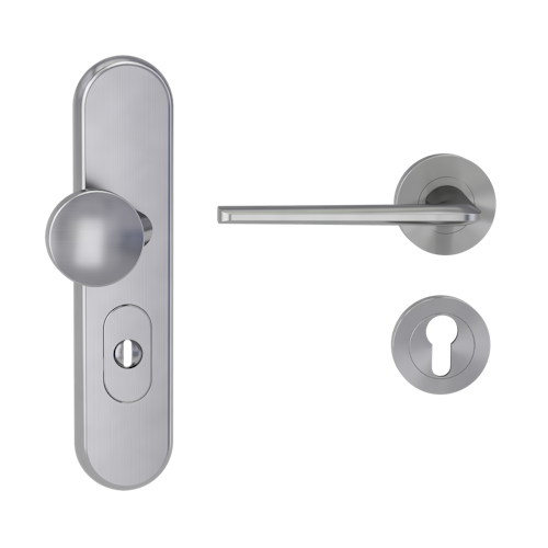 Griffwerk TITANO Kombi SB_882 ES1 (S2) -Edelstahl matt Kombi-Schutzbeschlag -Knopf/Drücker -mit Griff REMOTE -SG -rund -L -ZA, 72mm -TS 38-50
