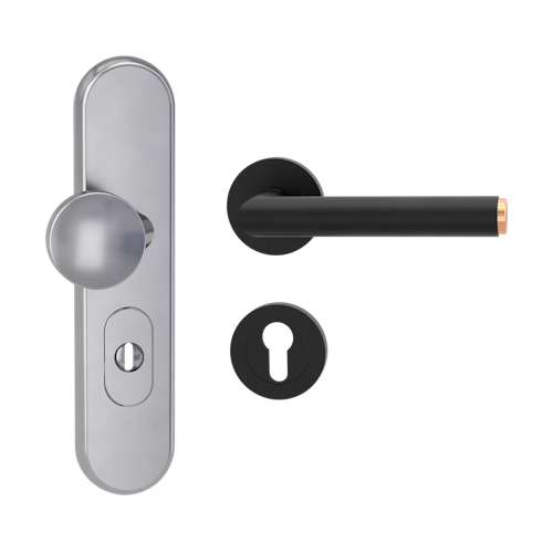 Griffwerk TITANO Kombi SB_882 ES1 (S2) -Edelstahl matt Kombi-Schutzbeschlag -Schild/Drücker -mit Griff LUCIA SELECT -GSC/CU -ZA, 72mm re