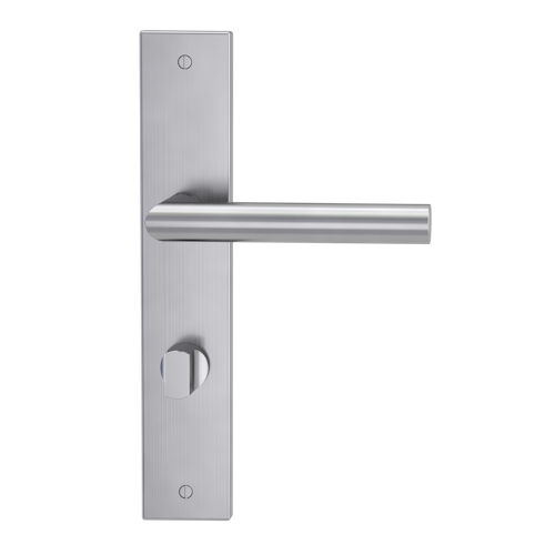 Nicht schwer zu erraten, dass es sich bei dem Türgriff um das erfolgreiche Modell LUCIA handelt, dem dann das formal passende Langschild zur Seite gestellt wurde. Folglich können Sie auch auf alle Drücker Varianten dieser Serie mit Klipptechnik bei der Ausstattung Ihrer Türen und Fenster zurückgreifen, also auch wenn z.B. eine Glastür mit einbezogen werden soll, wenn Kombischutzbeschläge oder Schutz-Rosetten-Garnituren benötigt werden, es werden keine optischen Brüche entstehen. Hochinteressant ist weiterhin, dass es LUCIA auch in der besonders angesagten SQUARE Ausführung, sprich mit quadratischen Rosetten gibt, was wiederum zu der rechteckigen Form des Langschilds sehr pfiffig aussieht. Dieses wird übrigens mit zwei sichtbaren Schrauben auf dem Türblatt montiert. Sollte eine Renovierung anstehen und die vorhandenen Türen übernommen werden, oder eine alte Rosetten- oder Langschildgarnitur durch ein neues Griffwerk Prunkstück ersetzt werden, prüfen Sie bitteunbedingt unsere Maßangaben. Auf die „inneren Qualitäten“ von LUCIA und LUCIO, letzterer ist lediglich für den privaten Bereich geeignet, ist garantiert Verlass.