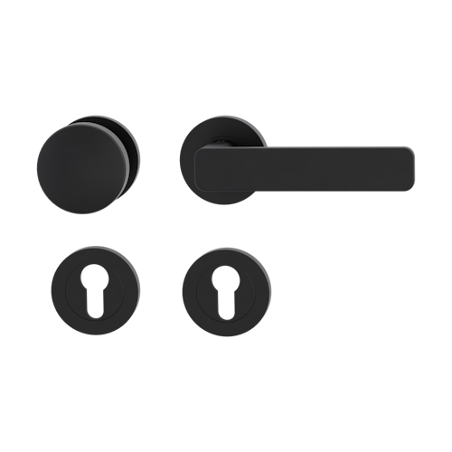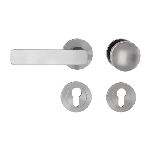 Im Gebäude- oder Wohnungsinneren soll selbstverständlich nicht bereits von weitem erkennbar sein, dass es sich bei dieser Tür um eine Sonder-Situation handelt, wenn dieser Beschlag optisch nicht mit den übrigen korrespondiert. Gleichzeitig soll auch gewährleistet sein, dass das Verlassen dieses Raumes oder Objekts jederzeit ohne weiteres möglich ist. Folglich besteht diese SIEGER DESIGN Wechselgarnitur aus einer Rosettengarnitur der Serie MINIMAL MODERN und dem runden, flachen Edelstahl-Knopf R2. Dessen Design harmoniert perfekt mit den runden Schraubrosetten. Bitte berücksichtigen Sie, dass weder Profilzylinder noch Schlüssel im Lieferumfang enthalten sind, da das Schloss optimaler Weise in die Schließanlage integriert wird. Alternativ könnte er hier im Shop dazu bestellt werden.