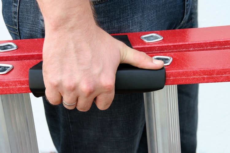 Ergonomisch geformte Griffzone für ein leichtes und komfortables Handling unserer Stufenleitern.