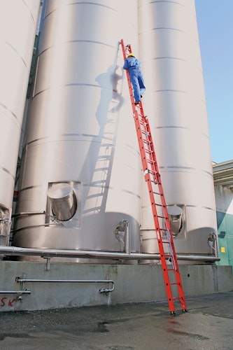 Die Holme und Sprossen bestehen aus GFK und sind ohne Füllstoffe, die Beschläge sind aus verzinktem Stahl. Rutschsichere und beidseitig geriffelte Sprossen mit einer Größe von 28 x 29 mm. Hochfeste Sprossen-/Holmverbindung, rutschsichere nivello®-Leiterschuhe.