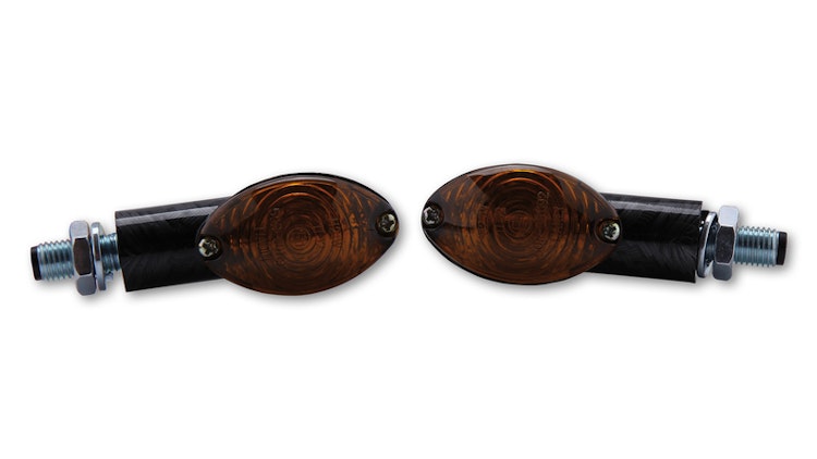 HIGHSIDER smart Cateye Glühlampen Mini-Blinker Gehäuse Schwarz / Linse Rauchgrau (Paar), Vorn & Hinten