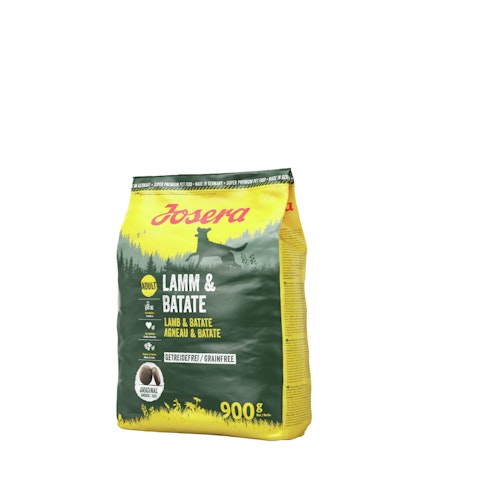 Josera Lamm & Batate bietet schmackhaftes Lammvergnügen für aktive Hunde. Die sorgfältig ausgewählte Rezeptur ohne Getreide sorgt unter anderem mit Süßkartoffel für eine schonende und köstliche Ernährung – auch für empfindliche Hunde.
