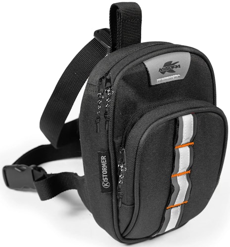 Die KAPPA Beintasche STO105 KSTORMER ist die ideale Lösung für Motorradfahrer, die schnellen Zugriff auf wichtige Kleinteile wie Ausweise, Geldbeutel oder Schlüssel benötigen. Sie verfügt über verstellbare Gurte für eine sichere Befestigung an Bein und Taille, was einen festen Sitz während der Fahrt garantiert. Die atmungsaktive Rückwand sorgt auch bei längeren Fahrten für einen hohen Tragekomfort, während die Fronttasche für eine übersichtliche Organisation sorgt. Für die Sicherheit bei Nachtfahrten ist die Tasche mit reflektierenden Einsätzen ausgestattet. Mit einem Volumen von 1 Liter ist sie kompakt und stört nicht beim Fahren, bietet aber dennoch ausreichend Platz für das Nötigste.