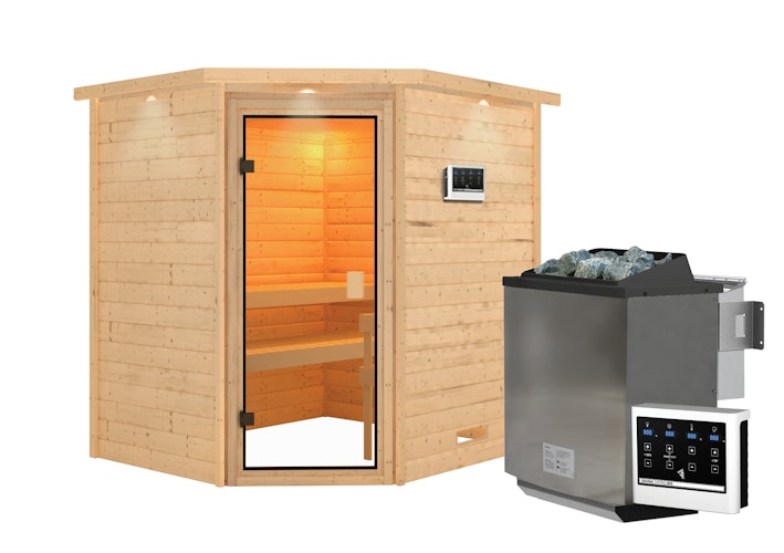 - Einfache und bequeme Steuerung des Saunaofens per Smartphone (kostenlose App) oder über das moderne Steuergerät