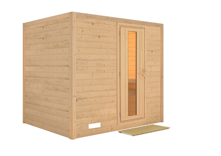 Karibu Sauna Sonara - Massivholzsauna mit Fronteinstieg 38 mm